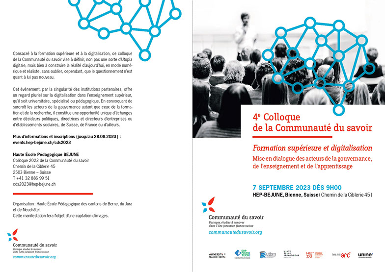 4.e Colloque de la Communauté du Savoir. Formation supérieure et digitalisation. Mise en dialogue des acteurs de la gouvernance, de l’enseignement et de l’apprentissage
